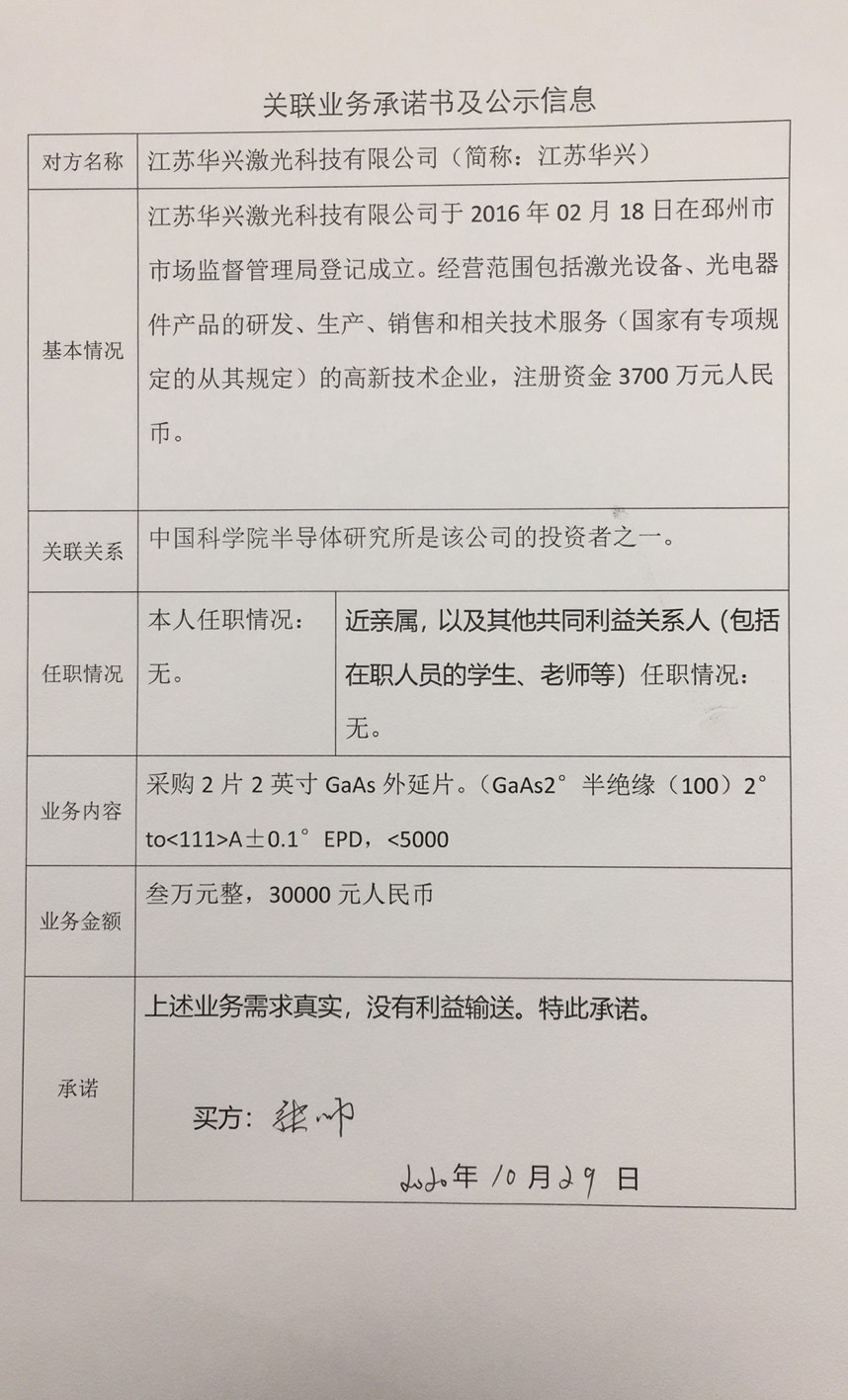 现将与河南仕佳光子科技股份有限公司的关联业务予以公示,如有异议请在5个工作日向科研处提出。