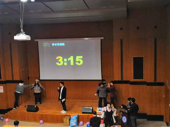 每项游戏都有4支队伍参与,活动中,选手们洋溢着十足的活力,展现了深厚的知识储备和丰富的文化情操,整个活动高潮迭起,选手和观众都积极踊跃,精彩纷呈。“背对背拥抱”游戏时,每个队伍都展现了十足默契,现场气氛欢快;“传声筒”则考验了选手的记忆力,刘浩、李叔伦、韩荣坤小组中的一个成员更是将整段电影对白完整的复现,引得现场掌声连连,让人惊叹;“诗词大会”和“半所智囊团”作为抢答题,选手们更是每分必争,参赛队伍都瞬间抢答不给对方机会,选手都表现了充分的智慧和反应力;“我为歌狂”和“你来我往”中,选手们化身麦霸歌王,一展歌喉,在主持人的引导下台上台下互动不断,时而掌声热烈,时而笑声不断。