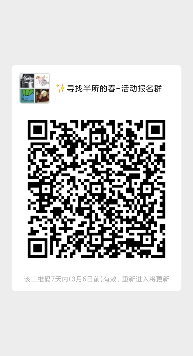 【报名方式】 :1-4人均可,扫描二维码进群报名,单人亦可于微信群内进行组队。