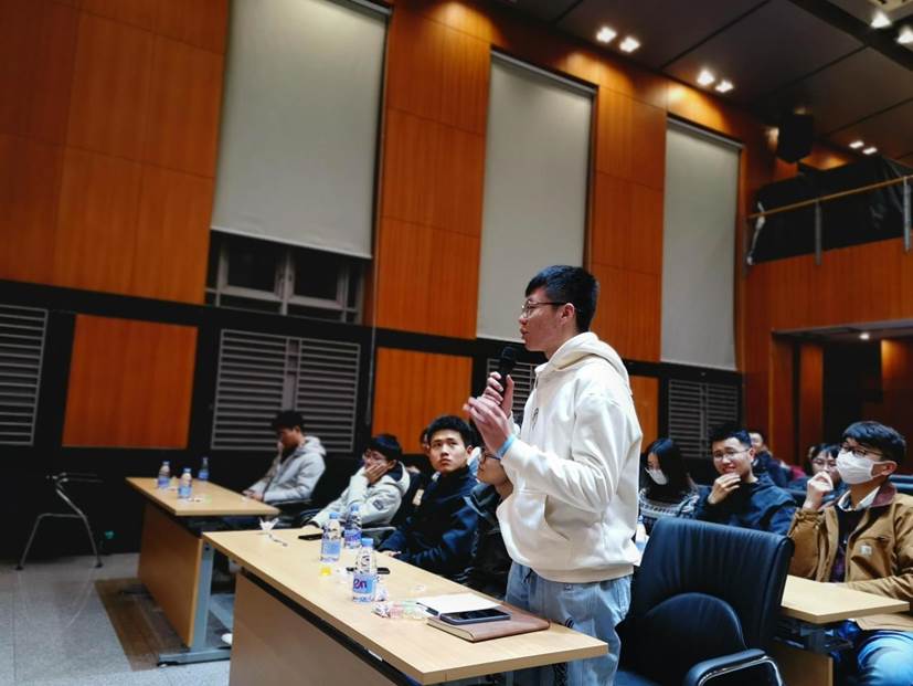 同学们踊跃提问,就如何选定研究方向、如何查阅相关文献等方面询问刘香全师兄,师兄也进行了细致的讲解,认为应多看文献,狠心投入,方有成果,将整个研究生生活直观地展现到了新生眼前。