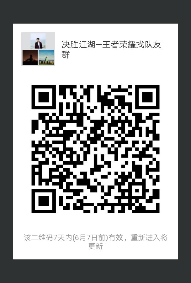关于“决胜江湖”中王者荣耀的比赛,我们只接受组队形式报名,为了帮助大家寻找队友,特新建一个群聊,想参与活动找不到的队友的同学可扫码进群寻找队友!报名名额有限,请大家抓紧时间报名!