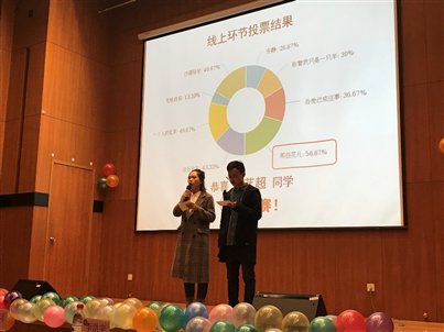 参赛选手们精彩的演出,让我们感受了到他们的才华横溢,感受到他们了青春的个性飞扬!比赛的竞争是激烈的,结果也有人欢喜有人忧,但比赛的过程却是快乐的,每个选手都站上了这个展现自我的大舞台,呈现了最完美的自己。最终文俊同学以一首极具豪气的歌曲《滚滚长江东逝水》获得了本次比赛的冠军。此外根据观众投票结果,文俊同学以121最高票数斩获本次大赛的最佳人气奖,投票过程共计196人次有效填写。