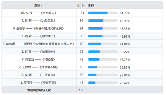 此外通过全民K歌参与的线上选手们经观众投票,齐艺超同学凭借一首《那些花儿》以56.67%的最高占票比成功晋级决赛。