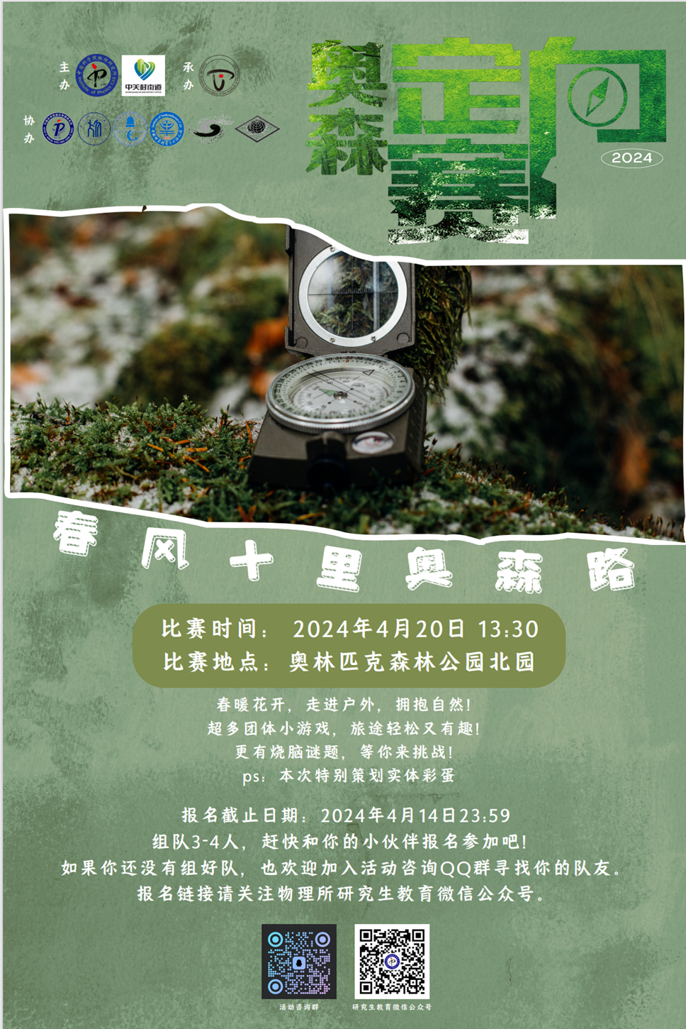 为增强地区青年工作活力、丰富地区青年活动形式,在五四青年节来临之际,中关村街道、中国科学院物理研究所拟联合地区青年工作联席会成员单位以及中国科学院科研院所共同开展“春风十里奥森路”定向越野大赛。