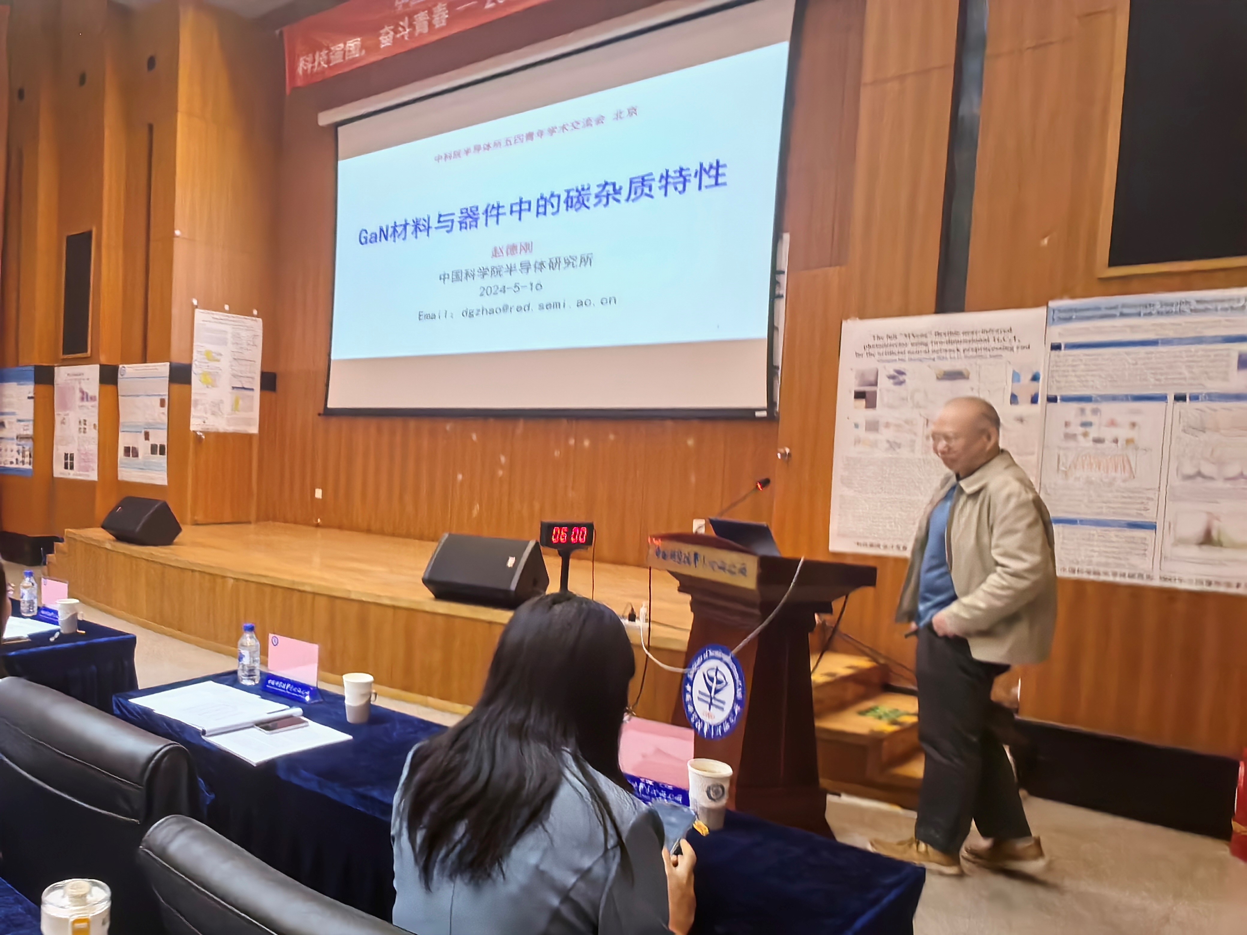 交流会期间,赵德刚老师应邀为同学们作了题为《GaN材料与器件中的碳杂质特性》的特邀报告。赵老师针向大家介绍了GaN材料中碳杂质的来源、碳杂质的负面和正面行为以及激光器验证与新进展,展示了相关研究结果,受到了同学们的热烈欢迎。