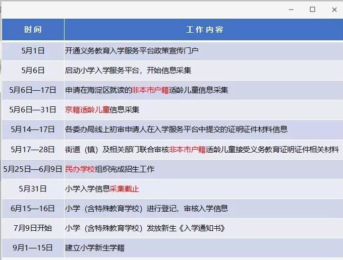 以下为海淀区2019年小学入学工作日程安排,有需求的老师请自行登录义务教育入学服务平台进行信息采集。