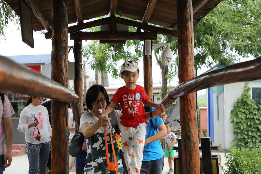此次亲子活动丰富多样,异彩纷呈,共包括五个项目。“走进民俗表演”让大家体验了广场跑驴活动,活动中赶驴的、坐驴的、跨勒环、着鞭、扬蹄、撒欢、闹性……生动活泼、惟妙惟肖。“户外拓展活动”包括过独木桥、攀绳网、钻网圈、跷跷板,走滚筒,荡秋千、高架攀绳,孩子们乐此不疲的挑战这些潜能拓展项目。“农事体验活动”中推碾子磨粗粮,在实践中孩子们学到了它们的古老原理,体验传统农艺。“植树体验活动”中孩子及家长一起行动起来,携手绿化环境、绿化我们的家园,让孩子们继承中华民族爱树、植树、护树的好传统。“传统手工制作活动”特邀非遗传承人“面人张”现场教学制作面塑;除此之外,孩子们还可体验了画脸谱、DIY小帽、刮画、共计四项动手课程。孩子们的兴趣一路高涨,描绘自己喜欢的图案,设计自己喜欢的样式,在感受民族传统文化的魅力的同时提升孩子的创新合作能力和动手能力。手工制作结束时,孩子们都收获满满的,一路上很自豪地和爸爸妈妈分享自己的作品。
