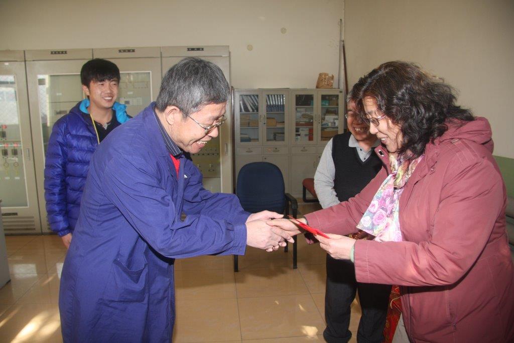 受半导体所所长李树深院士委托,2月6日下午,党委书记、副所长张春先在综合办公室主任慕东、基建园区处副处长娄纪勇、运行保障部部长于光军、科住物业公司半导体所项目部经理刘晓红等陪同下,代表研究所亲切看望慰问了后勤支撑系统职工和科住物业公司值班人员,将新年的祝福和全所职工的问候带给他们。