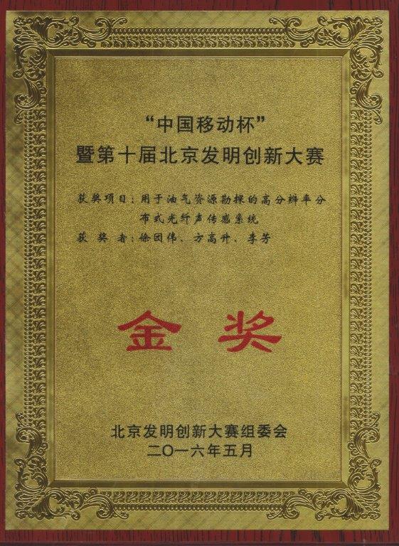 2016年5月10日下午,第十届北京市发明创新大赛颁奖典礼在国家图书馆音乐厅举行,半导体所光纤传感组徐团伟、方高升、李芳三位同志的项目“用于油气资源勘测的高分辨率分布式光纤声传感系统”获得金奖。