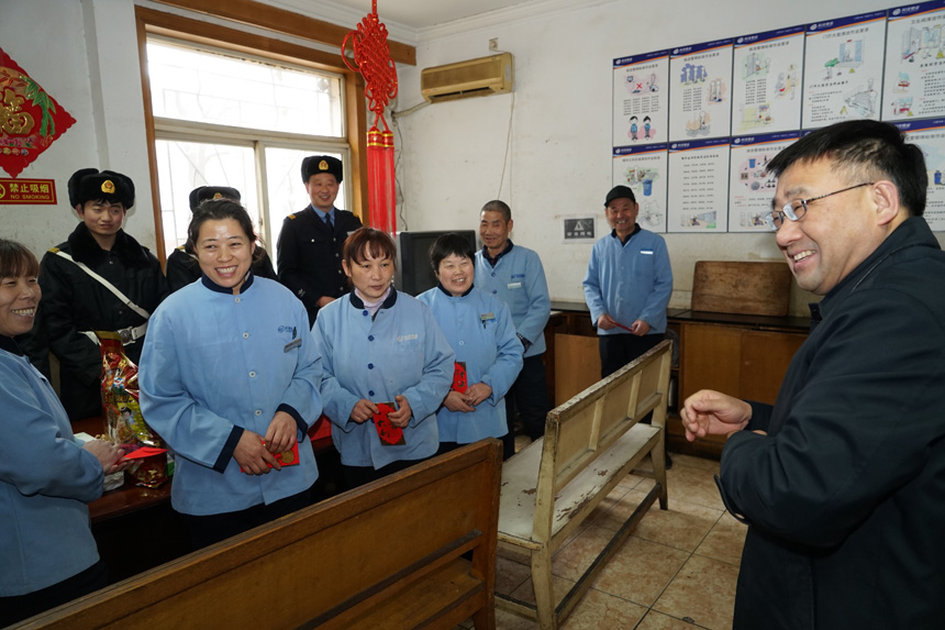 2月14日(腊月二十九)上午,党委书记、副所长冯仁国在综合办公室主任慕东、副主任兼运行保障部部长于光军、科住物业公司半导体所项目部经理刘晓红等陪同下,代表研究所亲切看望慰问了后勤支撑系统职工和科住物业公司值班人员,将新年的祝福和全所职工的问候带给他们。