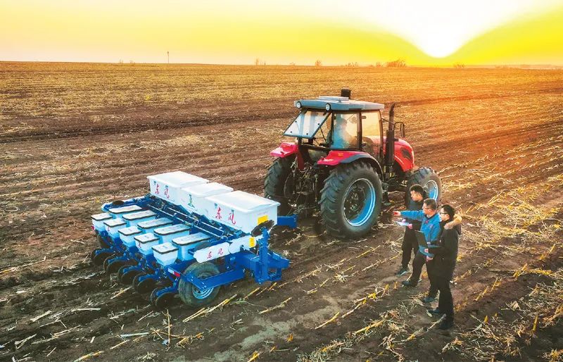 中国科学院正在发挥建制化、体系化优势,联合有关部门和地方政府组织开展“黑土粮仓”科技会战,以科技支撑实施国家黑土地保护工程。图为2021年3月9日,中国科学院计算技术研究所智能农机团队在吉林省四平市梨树县为四平东风农机公司免耕播种机提供智能化升级技术支持,指导开展春耕备耕。 中国科学院供图