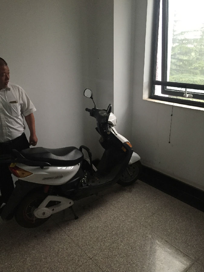 二、有人将电动自行车放到步行梯口充电,并违规在楼道内连接电源线;