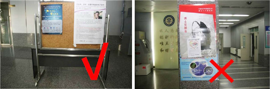 1.请大家在公告栏张贴通知或海报,张贴要整齐、有序,切勿用双面胶张贴。