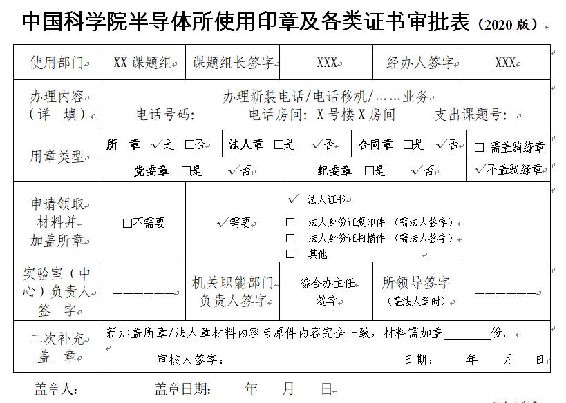 办理要求:新装电话的,所办理的电话号码申请加入半导体所大账号(即所内可以拨后4位内线,电话费由银行托收,所财务每半年统一分摊,可提供82304210供联通工作人员查询办理)。另外,申请新装电话的同时,可以申请开通国内长途或国际长途业务(不申请的话默认仅能拨市话)、来电显示业务(每月5元,具体以联通为准),请提前和课题组长确认是否需要这两项业务。