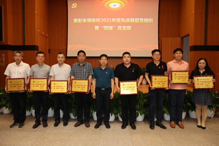 冯仁国宣读了《所党委关于表彰半导体所2021年度先进基层党组织暨“四强”党支部的决定》,他指出,希望全所各党支部以受到表彰的先进典型为榜样,打造“四强”党支部,进一步增强战斗力,激励科研人员,积极投身研究所改革创新高质量发展,努力为实现半导体科技高水平自立自强作出新的更大贡献。随后,谭平恒向获得表彰的8个支部颁发了奖牌。