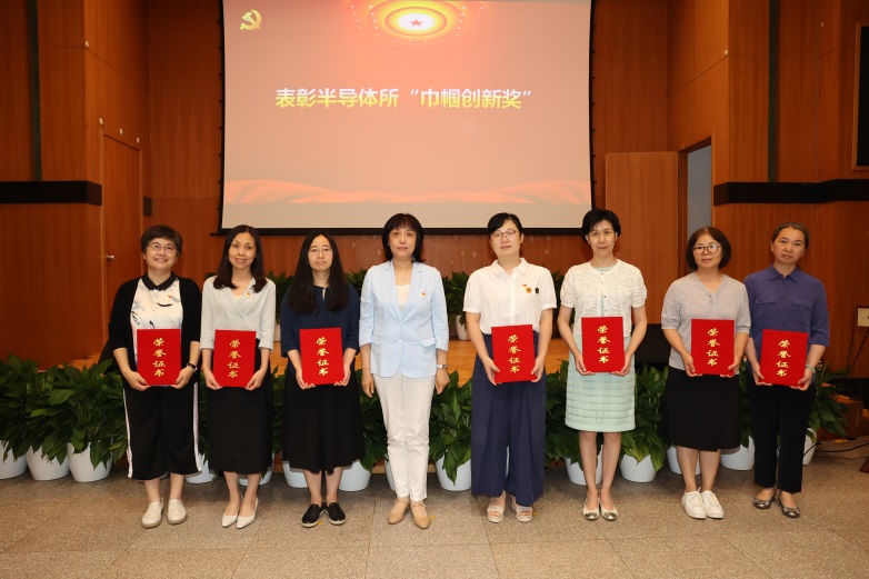 随后冯仁国还宣读了《所工会、妇委会关于表彰半导体所“巾帼创新奖”的决定》,他强调,希望全所女同志以她们为榜样,以更加务实的态度、创新的精神、严谨的作风投入工作,在新的起点上,为实现高水平科技自立自强贡献巾帼力量。随后,所妇委会主任樊志军为“巾帼创新奖”获得者颁发了荣誉证书。