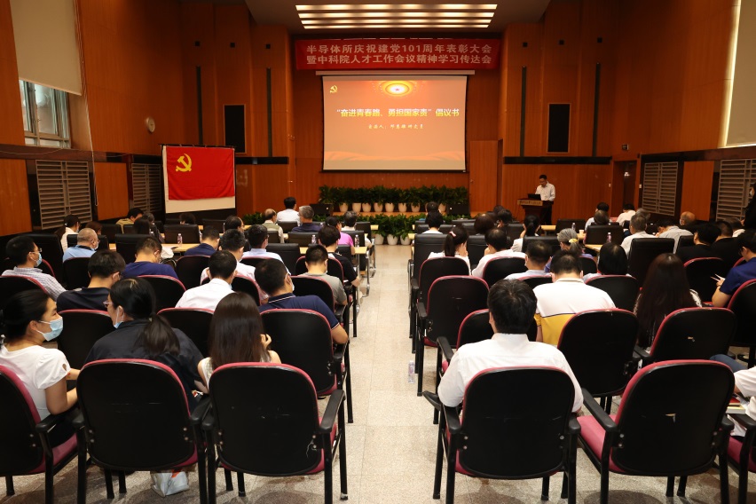 7月1日下午,半导体所召开庆祝建党101周年表彰大会。半导体所所长谭平恒,党委书记、副所长冯仁国,党委副书记、纪委书记樊志军,副所长张韵以及两委委员、各党(总)支部书记、副书记、支部委员、工青妇组织负责同志和表彰对象等80余人参加会议。会议由冯仁国主持。