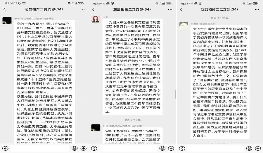 为深入学习贯彻党的十九届六中全会精神, 12月21 日,超晶格第二党支部组织开展“赓续百年红色血脉 扛起‘国家事’‘国家责’”主题党日活动,组织支部党员集中学习党的十九届六中全会精神,并组织党员交流心得、研讨体会。活动以线上形式召开,活动由支部书记魏钟鸣主持。