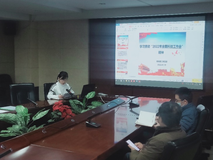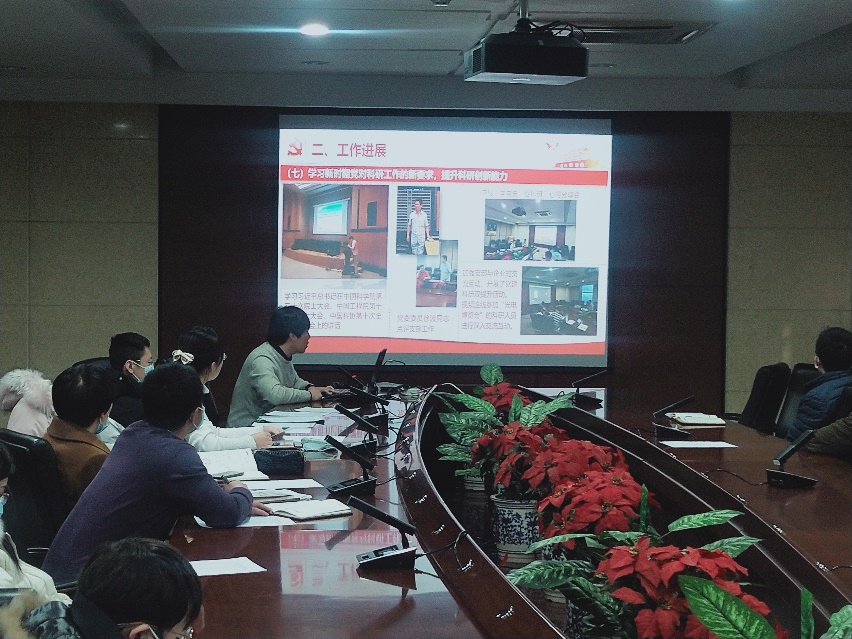 第一项议程是支部副书记王皓做“关于学习贯彻2022年全国科技工作会议和中科院党组2021年冬季扩大会议精神”的专题报告。引导支部党员同志认真贯彻会议精神,落实中央经济工作会议和院党组2021年冬季扩大会议部署要求,坚持“四个面向”,落实“四抓”要求,以加快实现高水平科技自立自强为目标,着力强化国家战略科技力量,着力加强基础研究,着力打好关键核心技术攻坚战,提升科技创新整体效能,发挥科技对国家发展和安全的战略支撑作用。
