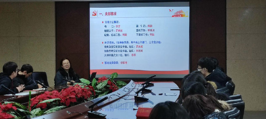 1月19日下午,纳米光电党支部在3号楼320会议室召开党员大会,开展“以‘三个最强’为目标狠抓落实 助力半导体科技高水平自立自强”主题党日活动,支部党员及积极分子20余人参加会议,会议由组织委员罗英波主持。