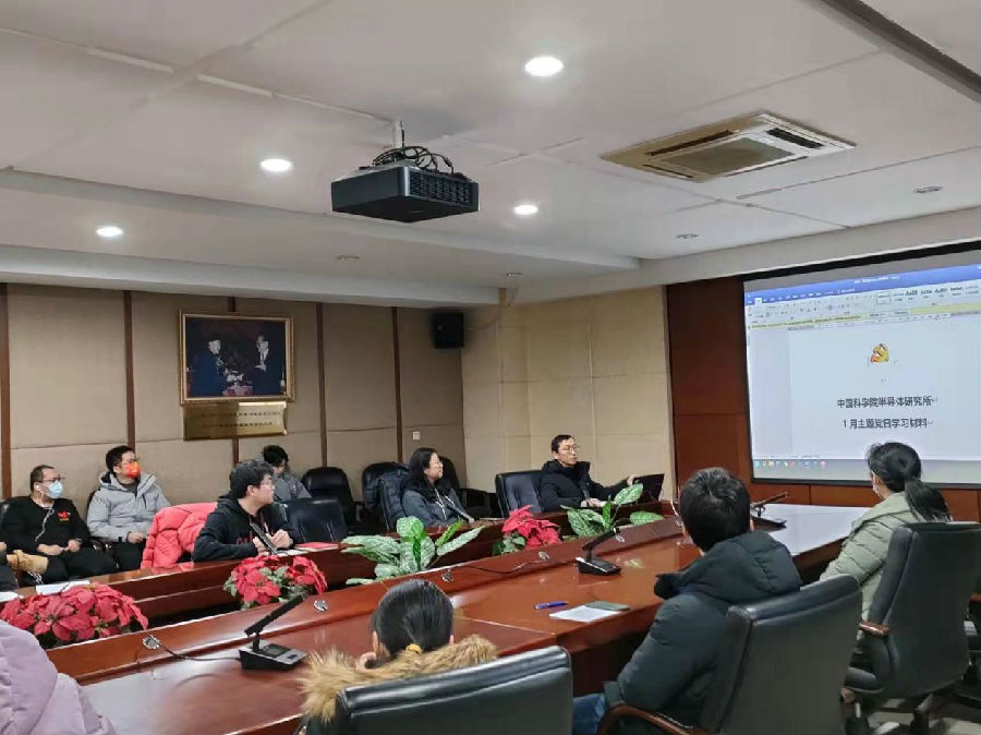 会议第二项议程是支部副书记熊聪带领大家专题学习中央经济工作会议、中科院党组2021年冬季扩大会议、党史学习教育总结会议精神。引导党员同志们深刻理解中央经济工作会议和党史学习教育总结会议上习近平同志的重要讲话精神,激励党员同志要发挥先锋模范作用,为我国半导体科技高质量发展做出贡献。