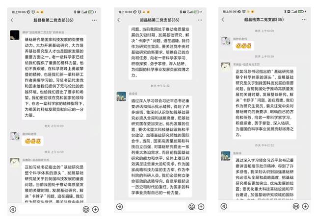 会议第二项议程,党员同志们结合自身工作,围绕加强基础研究开展了讨论,分享心得体会。通过交流讨论,引导党员同志加强基础研究关键核心技术攻关,提升原始创新能力,激发党员同志自主创新、自立自强、奋进攻克新时代基础前沿和核心关键技术的强大力量。