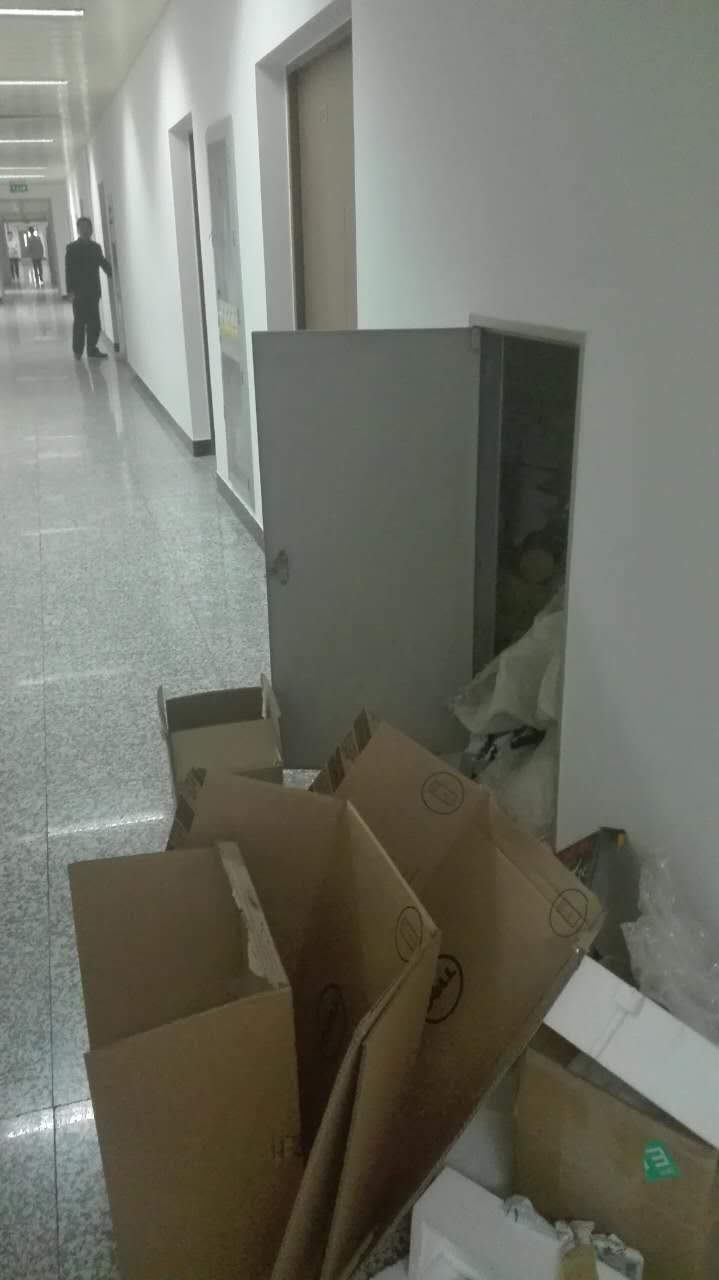 科研楼夹层内清运杂物现场