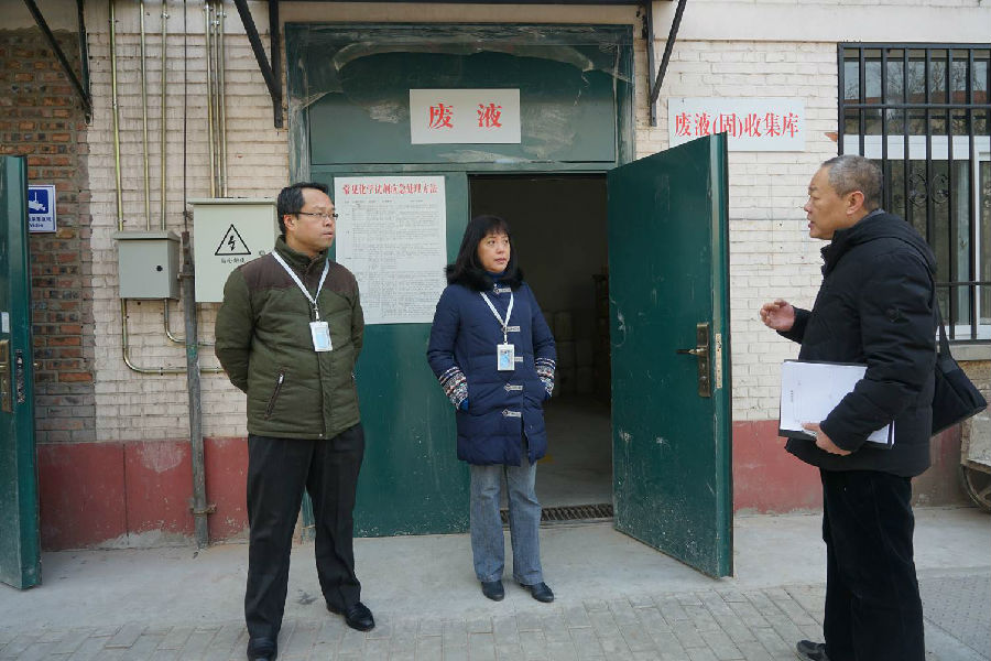 按照中科院办公厅通知要求,结合元旦、春节期间研究所安全工作特点,在新春佳节即将来临之际,为及时发现并排查各类安全隐患,确保春节期间研究所园区的安全稳定,1月9日,所党委副书记、纪委书记樊志军在综合办公室主任慕东、副主任于光军、安全主管贾俊伟陪同下,重点检查了部分实验室、研究生学习间、危化品库、废液(废固)库等场所的安全工作。