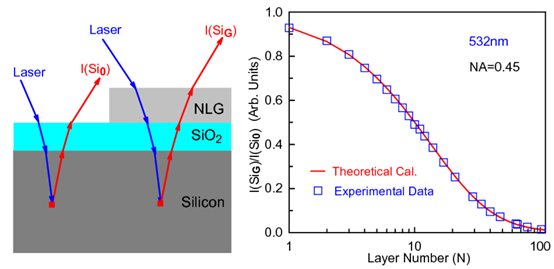 最近,中科院半导体所谭平恒研究员和其博士生李晓莉等人提出了利用支撑石墨烯的多层介质衬底拉曼振动模的强度来测试放置于这种多层介质衬底上的石墨烯样品层数。激光从空气中穿过石墨烯进入多层介质衬底,激光的强度会被多层石墨烯部分吸收,同时,激光在石墨烯与多层介质衬底组成的复合体系中会发生多次反射和干涉,结果入射到衬底的激光强度还会反射和干涉的影响。同时,衬底被激光所激发的拉曼信号通过介质层又会进一步发生多次反射和干涉并受到石墨烯层的吸收,最后被显微物镜收集和探测。因此,被石墨烯覆盖的(I(SiG))和未被石墨烯覆盖的(I(Si0))衬底拉曼信号的强度比I(SiG)/I(Si0)与石墨烯的层数密切相关并成单调变化关系,可以用来鉴别石墨烯的层数。研究组以普遍使用的SiO2/Si衬底为实例,利用传输矩阵方法分析了石墨烯层数、二氧化硅层厚度、显微物镜数值孔径和衬底拉曼张量等对I(SiG)/I(Si0)的影响,发现当物镜数值孔径小于0.5时,理论曲线与实验结果吻合很好,可确定多层石墨烯样品层数。研究组也研究了离子注入引入缺陷的多层石墨烯,发现I(SiG)/I(Si0)数值与缺陷的存在关系不大。因此,该方法能避免样品中缺陷以及样品层间堆垛方式不同等因素对层数测量的影响,并对100层以内样品的层数表征具有很高的准确性。同时,该方法实验测试简单,不依赖于SiO2/Si衬底的取向和入射激光的偏振状态,对不同的实验测试系统具有普适性。该研究工作近期在线发表于Nanoscale,相关工作全文链接为http://pubs.rsc.org/en/Content/ArticleLanding/2015/NR/C5NR01514F。