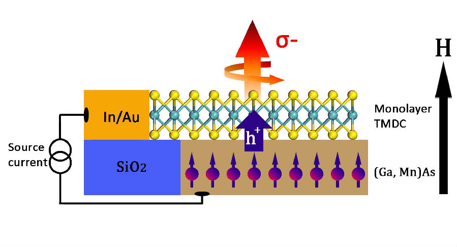 图1 在TMDC/(Ga,Mn)As异质结构中实现对谷自由度的电学调控