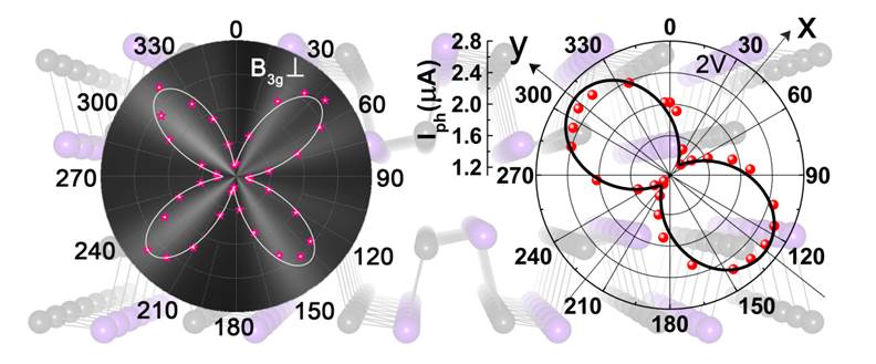 图1. 由GeSe低晶格对称性导致的角度依赖各向异性拉曼信号和808 nm激光下的探测性能。