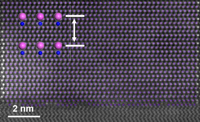 研究团队通过第一性原理计算,揭示了蓝宝石衬底表面氮化的最稳定原子构型及界面生长前端(图3)。随后,通过原子级界面表征确认了衬底氮化及后续生长的原子构型,发现衬底表面的由高/低位Al引起的周期性起伏,会导致氮化物c面原子间距经历从拉伸状态逐渐变化至正常的生长模式的转换(图4)。结合密度泛函理论,研究人员建立了界面氮化及缓冲层生长的原子级堆叠过程:N原子与低位Al原子成键→高位Al填充→Al原子与N原子成键→锯齿状zigzag结构形成。证实了该原子沉积过渡区是三斜体系到六方体系的转变区域。