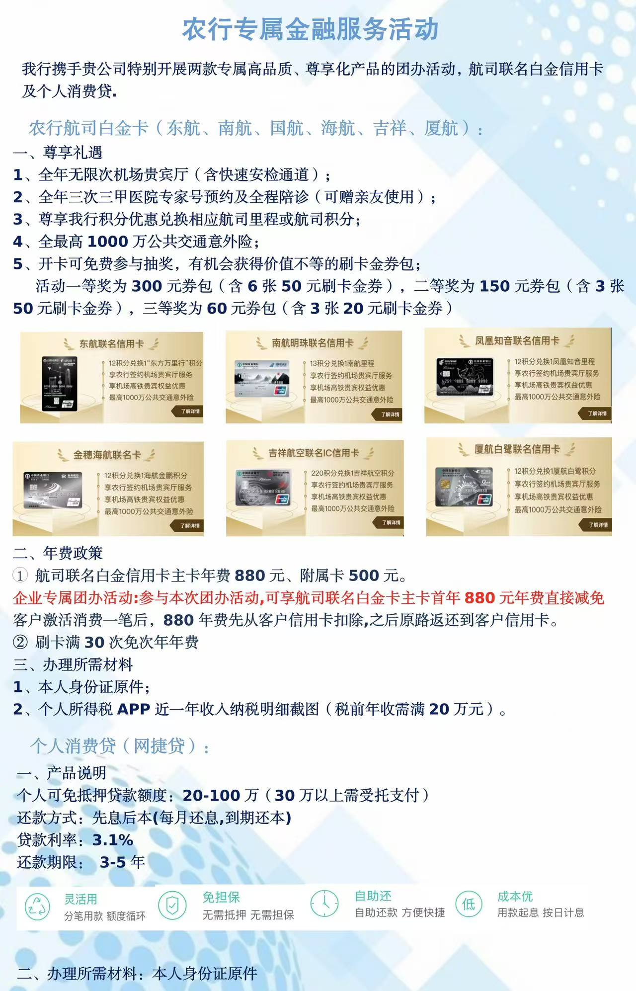 中国农业银行北京海淀东区支行营业部为我所特别开展航司联名白金信用卡和个人消费贷两款团办活动,详细信息见附图,2024年12月25日(本周三)11时-14时于图书馆101会议室现场答疑并集中办理,感兴趣的老师可自行前往咨询办理。