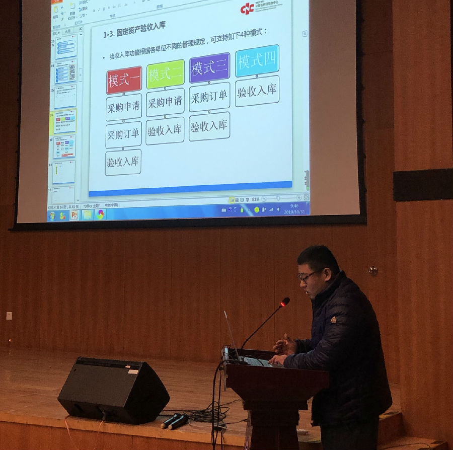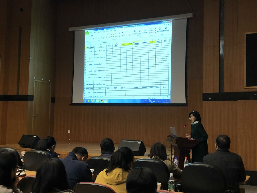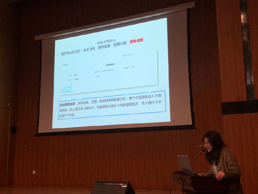 财务处副处长王军结合系统测试运行经验,全面系统的介绍了“新一代”ARP四大模块的设计和使用;毛强、郭怡宁、丁显瑶分别对固定资产、收入与支出单据填写流程进行了详细说明。参会财务助理就系统测试操作中已经遇到及可能遇到的问题进行了提问,并向财务提出了优化思路。