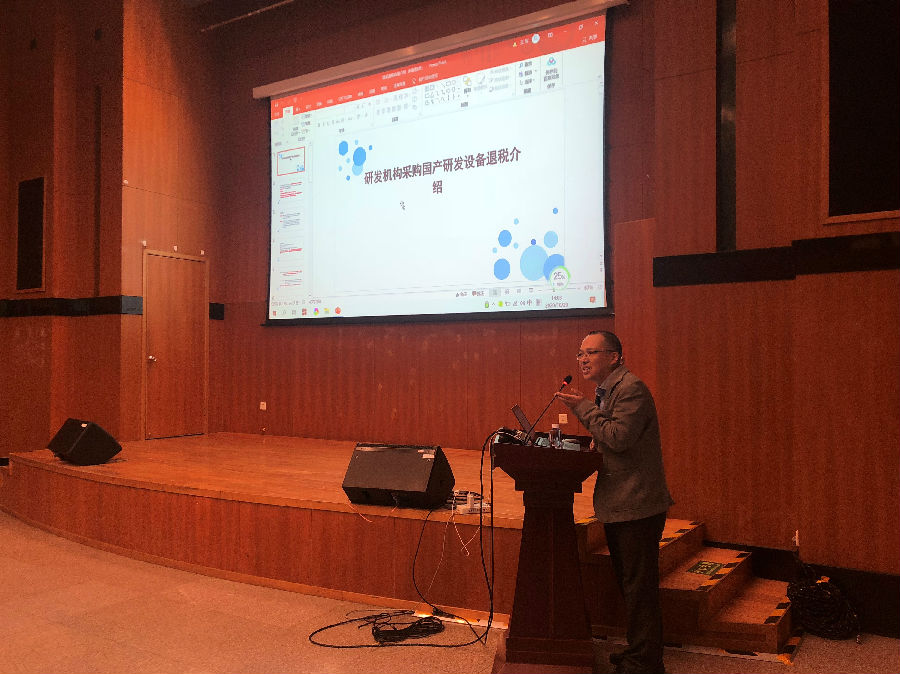 为鼓励科学研究和技术开发,国家对符合规定的研发机构采购国产设备进行全额退还增值税。此前财务资产处已向主管税务机关提交办理国产设备退税资格备案。为充分利用政策红利,有效降低科研成本,提高资金使用效率,使科研人员更好的了解相关政策及办理流程,2020年10月20日,财务资产处召开关于国产设备退税宣讲会。科研财务助理及部分课题负责人等共35人参加了本次培训。培训由财务处副处长王军主持,北京市朝阳区进出口企业协会副秘书长闻迟主讲。