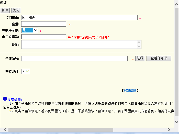 3. 从2019年起,ARP内电子发票登记服务启用,如报销中含电子发票,请务必在ARP系统内勾选并填写电子发票号,报销单所附打印版电子发票不需要再手写“仅报销一次,重复报销责任自负”。