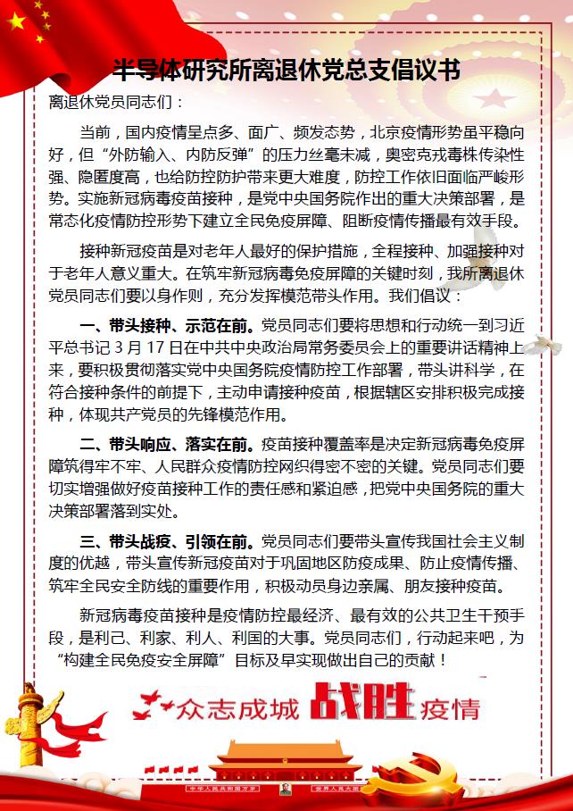 离退休党总支倡议离退休同志接种疫苗倡议书