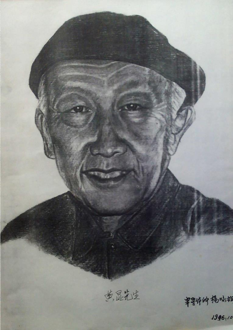 第一件事:有幸为黄所长画肖像,记得那年黄先生和林兰英先生在科研上得了何梁何利奖,正值我所举办书画展的时候,我想给二位院士画人物肖像,于是我到党办主任何春藩那里找了两张二位的照片,我怀着敬仰的心情为二位院士画了两幅肖像,然后交到办公室让大家评论,有人提出林先生的头发太逼真了(发型较乱),建议脸画靓点儿,把老太太画漂亮一些。说黄先生画的还可以,于是,我在林先生的面部和头发又作了调整大家看后异议不太大了,接着我又照原样画了两幅,所办公室给配了四个镜框装好之后两幅送给二位院士,两幅参加所里书画展。