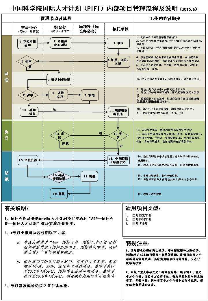 (一)所有申报2018年度PIFI人才计划的中方科研人员,均须先登录国际人才交流平台(网址:http://international-talent.cas.cn)完善个人信息及英文简历后方可通过ARP系统填报PIFI申请。具体登陆方式请与研究所外事或外国人才引进工作管理人员联系。