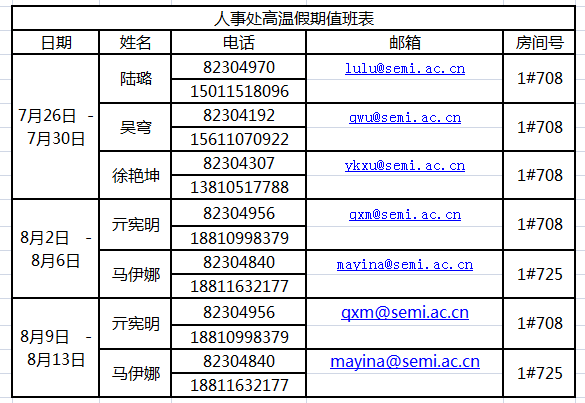 按照《关于2021年职工带薪休假有关事宜的通知》精神,现将人事处2021年高温假期值班表公布如下: