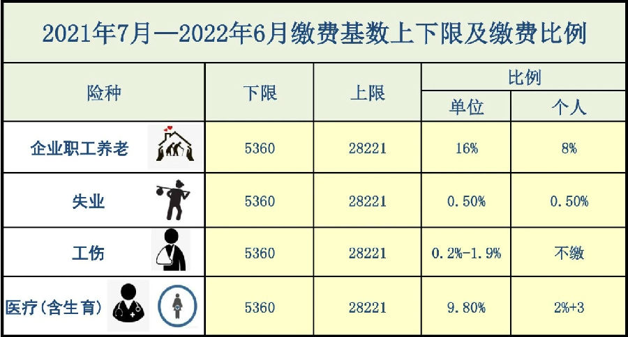 据北京市社保局相关通知,北京市社保扣缴年度为每年7月至次年6月。2021年度北京市各项社会保险和缴费工资基数上下限如下:
