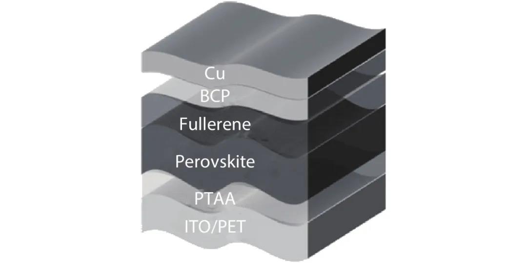 图 效率为18.1%的ITO/PET/钙钛矿/富勒烯/BCP/铜倒相fPSC的器件结构。