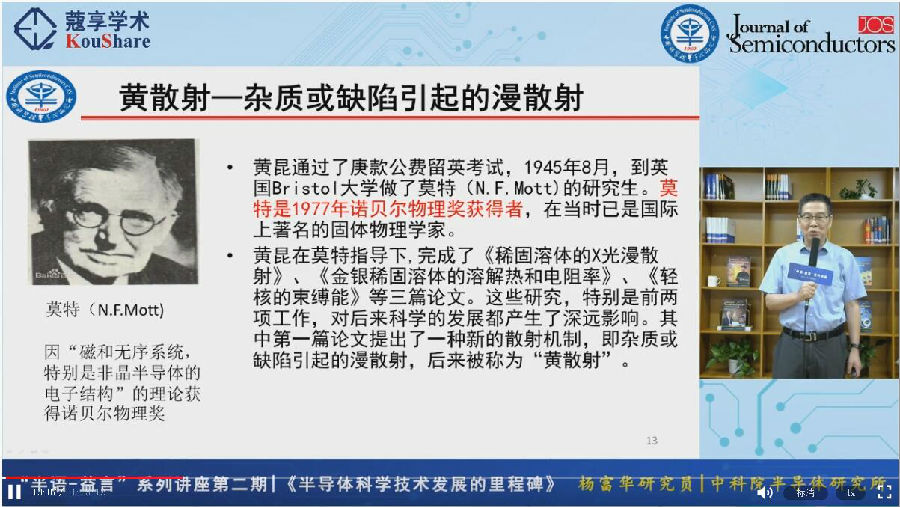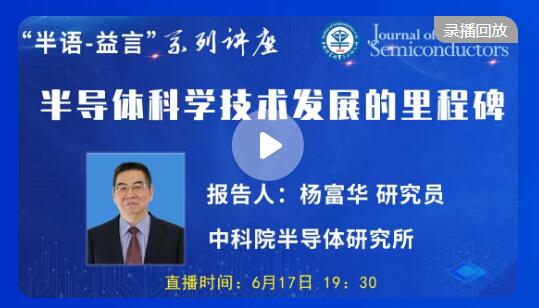 6月17日晚,《半导体学报》主办的“半语-益言”系列直播讲座第二期落幕。本期讲座由骆军委研究员主持,杨富华副所长在线做了题为“半导体科学技术发展的里程碑”精彩报告。报告着重讲述了半导体领域诺贝尔物理奖与半导体科学技术发展里程碑的关联性,揭示了其发展规律和特点,具有重要的现实意义。