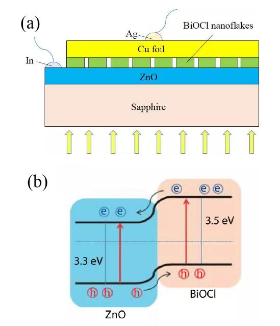 基于p-BiOCl纳米片和n-ZnO薄膜的复合异质结紫外光电探测器