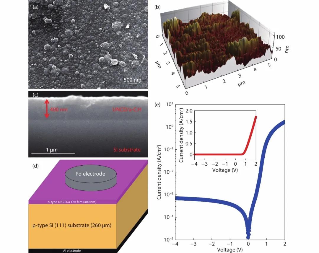 本文从实验上研究了氮掺杂超纳米金刚石/氢化非晶碳(UNCD/a-C:H)复合材料薄膜。该薄膜是通过同轴电弧等离子沉积方法在Si衬底上生长的。通过温度依赖的电容-频率测量来表征薄膜特性,其中温度和频率的变化范围分别为300–400 K和50 kHz–2 MHz。薄膜中陷阱态密度的能量分布可以通过测得的电容-频率特性这一简单的技术手段提取出来。在测试温度区间内,陷阱随能量呈高斯分布,峰值处于2.84 × 1016–2.73 × 1017 eV–1 cm–3范围内,中心位于导带以下120–233 meV处。这些态的产生是由于大量sp2轨道杂化的C键及π键态被局域在UNCD/a-C:H薄膜的晶界(Grain-boundaries,GBs)中。实验所得到的缺陷参数有利于对UNCD/a-C:H复合材料电学基本特性的理解,并且可用于抑制UNCD基材料的缺陷。