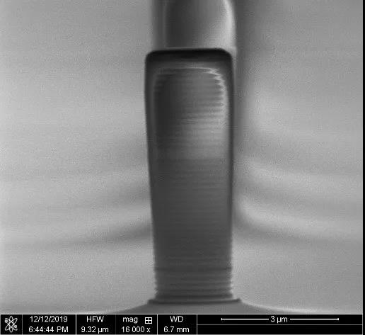 图2. 基于低密度量子点和上下DBR微柱共振微腔结构的单光子源的扫描电镜照片。