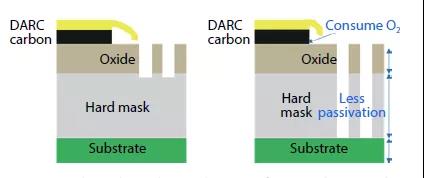 图2. SiO2掩膜版DARC 残留缺陷对后续工艺整合的影响机理。