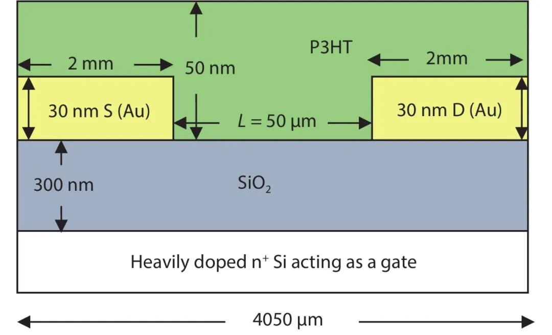 图1. 基于P3HT的底栅底触点(BGBC) OTFT的结构。