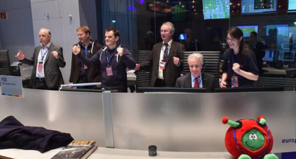 菲莱探测器与罗塞塔号成功分离的消息传来,欧洲宇航局内激动人心的一刻 在经历了十分之一个世纪的漫长旅途之后,欧洲宇航局的罗塞塔号(Rosetta)航天器终于在今年8月抵达67P/楚留莫夫-格拉希门克彗星并进入其近地轨道。三个月后,菲莱号(Philae)探测器从罗塞塔号分离,登陆67P表面,成为第一个着陆彗星的探测器。菲莱号成功将其在彗星表面收集到的信息发回地球,不过因为着陆点不太理想,菲莱号在64小时之后失去动力。 搜索太阳系以外行星的研究也有很大的进展。今年2月,开普勒(Kepler)航天器的相关研究团队宣布他们发现了715个太阳系外行星,这是人类迄今为止发现行星数目最多的一次太空探索。同时,开普勒航天器还第一次发现了处于恒星宜居带的和地球差不多大小的外行星,这是人类长期以来搜寻“孪生地球“路上前进的一大步。 3. 解码人类起源